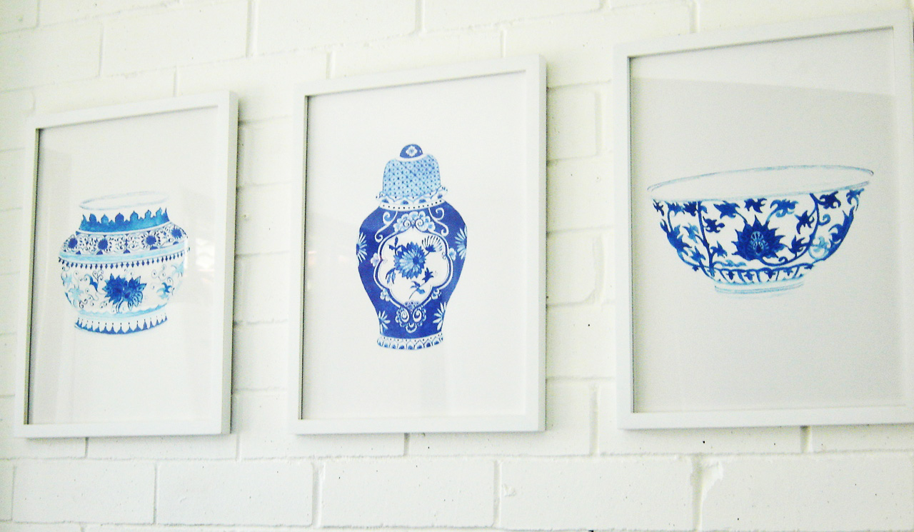 This morning, my art studio had a super-fast mini-makeover, ready for some glamour shots. I thought you might like to see how it's looking nowdays, complete with a couple of blue and white paintings you may recognise. Although I didn't have the time (or the team of stylists) to pull off a re-do anywhere near as fabulous as Martha's, it's nice to change things up once in a while. And while blue is the order of the day now, it will probably sport pinks and oranges next week. Which is half the fun of course.